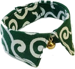 犬猫用首輪 唐草模様 襟つきカラー 緑 鈴付 ハンドメイド(M)