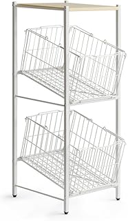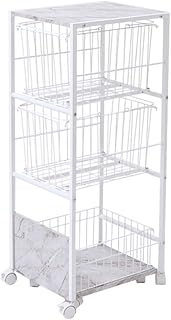 PaletteLife バスケットワゴン 3段 キャスター付き ランドリーワゴン キッチンワゴン スタッキング ホワイト