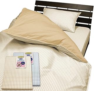 メーカー直販 防ダニ 掛け布団カバー (チェック柄) ダニブロック【スーパーガードII】 ダブル 190×210cm ベージュ