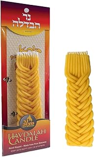 (Short Flat Braid) - Braided Beeswax Havdalah Candle - Hand Dipped Bees Wax with Extra Thick Short Flat Braid - Shabbat Judaica Gift - By Ner Mitzvah