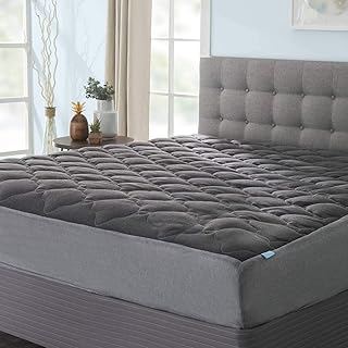 eLuxurySupply エクストラプラッシュ ミッドナイトグレー マットレスパッド フィットスカート付き – ピロートップマットレスカバー 米国製 – クール低刺激性マットレスプロテクター – ツインサイズ