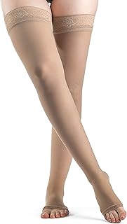Sigvaris Ever Sheer Thigh High 20-30mmHg Women's Open Toe Short Length, Medium Short, Natural by Sigvaris