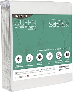 (Queen) - SafeRest Renewal Bamboo Derived Viscose Rayon Mattress Pad Protector Cover - Waterproof, Breathable, Hypoallergenic, Vinyl Free - Queen Size