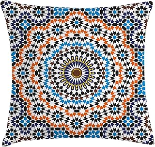 ヴィンテージスロー枕クッションカバーby Ambesonne、モロッコセラミックタイルInspired FloralアラビアOld Fashioned文化モザイク印刷、装飾正方形アクセント枕ケース、マルチカラー 18" W By 18" L min_37382_18X18