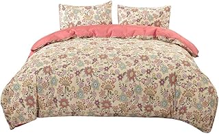 YOSTEV 花柄布団カバーセット ボタン留め 100%コットン ウルトラソフト アイボリーとブラッシュ、ツインサイズ