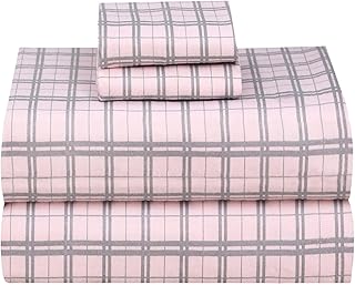 Ruvanti 100%コットン フランネルシーツ ツインピンク&グレー 格子柄 深いポケット 暖か スーパーソフト 通気性 ツインサイズ フランネル 子供用寝具セット フラットシーツ、ボックスシーツ、枕カバー1枚