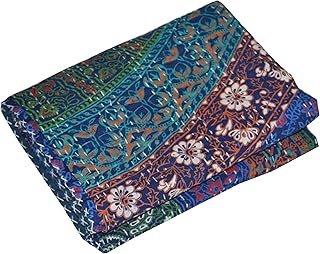 Yuvancrafts インディアンハンドブロック フローラルプリント カンタキルト ハンドメイド ビンテージ クイーンサイズ コットン カンタ スローブランケット ベッドスプレッド (マルチカラー、ツインサイズ)