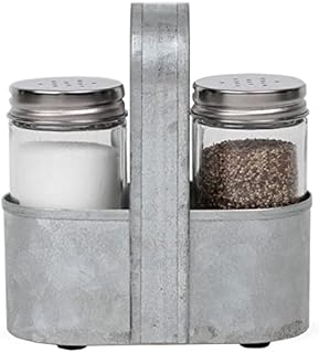 Farmhouse Salt and Pepper Caddy Set by Saratoga Home - Rustic Vintage Galvanized Decor - Weddings, Restaurants - 3-Piece Set - Easy to Clean, No-Mess Refilling