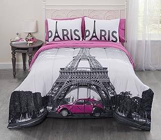 Kids Zone Home リネン 掛け布団セット パリ エッフェル塔 ハート 花 女の子/ティーン用 ホワイト ピンク ブラック Full Comforter ピンク