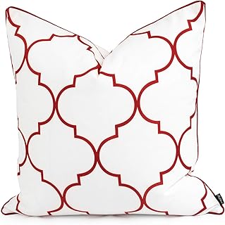 Hofdeco バレンタイン インドアアウトドア 枕カバーのみ 防水 パティオラウンジソファ用 レッド ホワイト モロッコ風四つ葉 20インチx20インチ