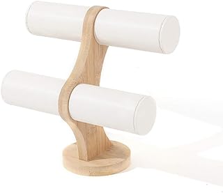 アクセサリースタンド バングルブレスレットスタンド T字型 木製 ジュエリーラック ディスプレイスタンド アクセサリー収納 展示 腕時計スタンド 大容量 収納力抜群 (ホワイト A,2階)