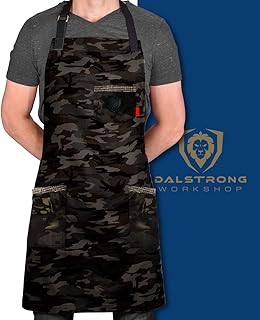 Dalstrong プロフェッショナルシェフキッチンエプロン – キッチンランボブラック – 100%ポリコットン迷彩 – 4つの収納ポケット – 撥水コーティング – 本革アクセント – 調節可能なストラップ