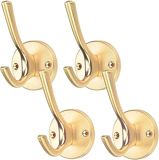 ZUONAI コートフック 壁装飾用 4個パック 高耐久 メタルフック コートや帽子のフック 壁に取り付け タオルフック 浴室 洋服 寝室 キーハンガー ダブルフック ゴールド