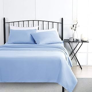 Wellbeing シーツセット 低刺激性 洗濯機洗い可 キングサイズ ベッドシーツ 寝具 シーツセット 16インチの深いポケット付き ブルー 4点セット