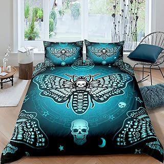 ゴシック スカル 掛け布団カバー デス 蛾 プリント 装飾 寝具セット シュガースカル パターン 掛け布団カバーセット ファスナー付き スケルトン 骨 装飾 ベッドスプレッド ユース 大人 ティーンズ ボーイズ ブルー キルトセット クイーン