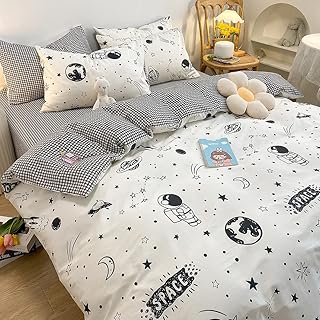 ブルーグリッド寝具セット ツインソフト ファームハウス 掛け布団カバーセット ツイン 幾何学模様 チェック柄 ボーイズ コットン 寝具セット シンプル モダン ティーンズ ブルー ホワイト グレー チェック柄 掛け布団カバー 隠しジッパー付き 掛け布団なし