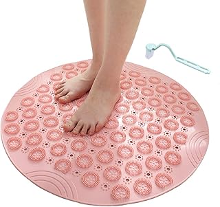 BALMYSPACE シャワーマット ノンスリップマッサージマット 排水穴付き 浴槽マット 吸盤付き 浴室 バスマット21 x 21インチ (ピンク)