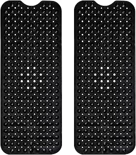ENKOSI バスマット - L ノンスリップ 浴槽&シャワーマット - エクストラロング 40 x 16インチ 浴槽用バスルームマット - 洗濯機洗い&防カビ 滑り止めバスマット (2枚パック) ブラック