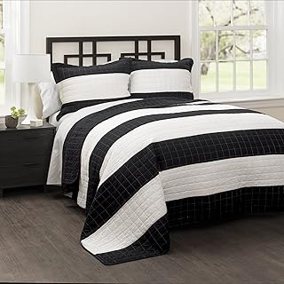 Lush Decor 16t000488 3ピースストライプキルトセット、キング、ブラック/ホワイト
