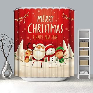 Assanu クリスマスシャワーカーテンパターンバスルームデコレーションシャワーカーテンアンチプライベートシャワーカーテン防水コーティングポリエステル生地バスルームシャワーカーテン72x72インチフック付き