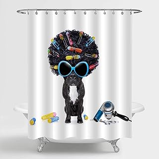 Assanu アフロブラックヘアの美容院で茶色の犬動物愛好家のバスルームポリエステル生地のガラスとシャワーカーテン、防水機洗えるフック付属のバスルームアクセサリー72 x 72ブラック