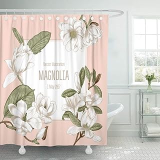 Assanu 昔ながらの植物が咲く茶色のマグノリアの花の木緑のパターンプライベートシャワーカーテン防水ポリエステル生地シャワーカーテン72x72インチ12プラスチックフック付き