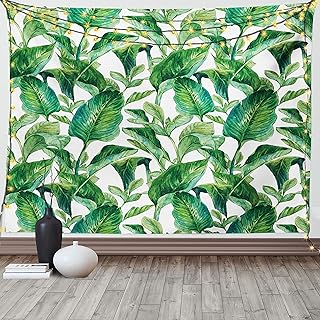 Ambesonne リーフタペストリー ロマンティックなホリデーアイランド ハワイアンバナナツリー 水彩画イメージ ファブリック 壁掛け装飾 寝室 リビングルーム 寮用 90インチ x 60インチ フォレストグリーン