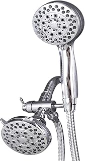 Auletin デュアルシャワーヘッド 取り外し可能シャワーヘッド ホース付き 高圧ハンドヘルドシャワーヘッド 9段階スプレーと5インチのレインシャワーヘッドコンボ 5フィートのシャワーホース 節水 工具不要