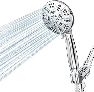 高圧ハンドヘルドシャワーヘッド MCAMO 9種類のスプレー設定 ステンレスホースとブラケット付き クローム仕上げ