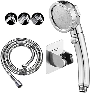 SINGSUO 高圧ハンドヘルドシャワーヘッド オンオフスイッチ付き 取り外し可能なシャワーヘッド 3種類のスプレー設定 ホースと調節可能なアングルブラケット付き (クロム)