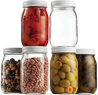 ガラス製メイソンジャー (6個パック) - レギュラーマウスジャムゼリージャー 金属製気密蓋 USDA承認 食洗機対応 米国製 ピクルス 保存 デコレーション 缶詰ジャー クラフト ドライ食品保存 (16オンス)