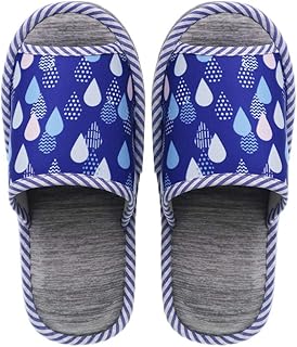 夏 スリッパ 接触冷感 雨 しずく柄 レディース (M : 約22.0~25.0cm / ネイビー) ひんやり 冷感素材 かわいい 女性 婦人 CXS-S84071-NV