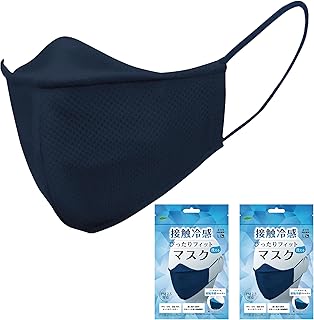 【 洗えるマスク 】 ぴったり フィット 接触冷感 マスク 2枚組| 男女兼用 女性用 男性用 ひんやり 涼しい 夏用 メガネ曇りにくい 耳に優しい 立体 丸洗い 繰り返し使える (ネイビー(紺), Lサイズ)