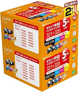 プレジール 互換インクカートリッジ CANON 5色セット(ブラック(顔料)・ブラック(染料)・シアン・マゼンタ・イエロー) 2個パック BCI-321+320/5MP PLE-CB3215P-2P