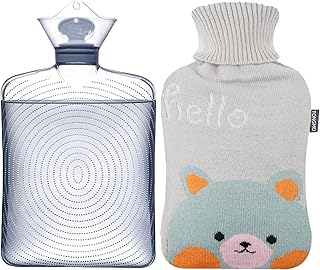 湯たんぽ 注水式 TONGMO エコ湯たんぽ ニットカバー付き 容量1.8L あったかグッズ 水漏れ防止 寒冷対策 疲労緩和 肩足腹対応 オフィス 寝室 男女兼用 プレゼント 暖房器具 繰り返し使用可 省エネ お湯入れ 保温グッズ グレー くま